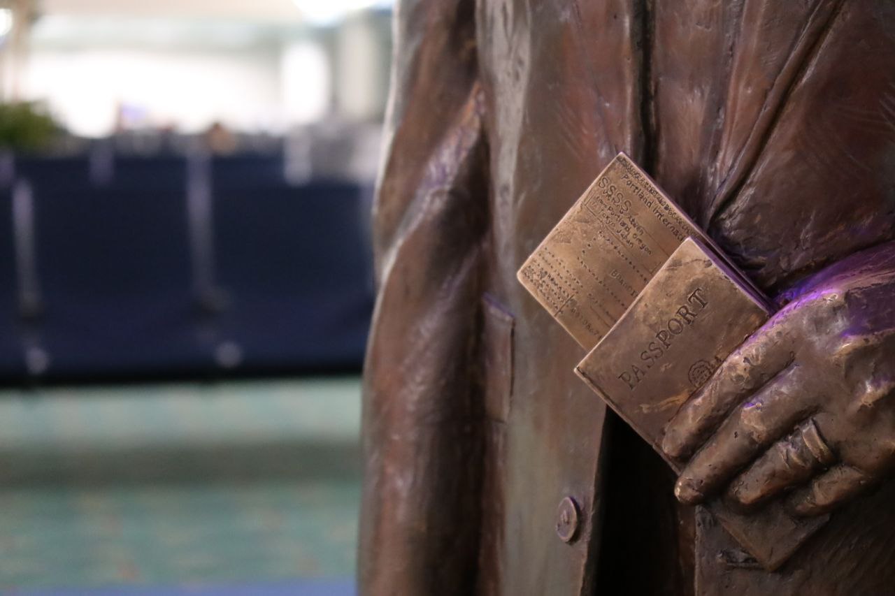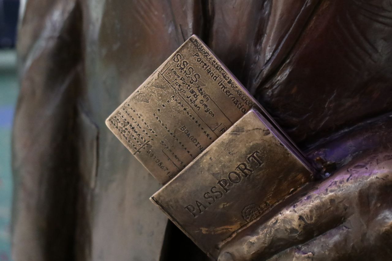 I also found a statue of former Oregon governor Vic Atiyeh. Worth noting here is that the former governor's statue is holding a boarding pass from Portland to Tokyo, and this boarding pass is sporting a large SSSS on the front. This "quad" signifies that the holder has been "selected" for Secondary Security Screening Selection. Maybe this occasionally happens randomly, but it happens every time you fly if you're on the "Selectee List", one notch down from the No-Fly list. Actually they're the same list, it's just whether or not a box is ticked that determines if you are allowed on airplanes or not. Having this on your boarding pass makes your time at airports quite uncomfortable: everything takes longer, you are scrutinized under a microscope, and your freedom of movement is limited. Thousands of dollars in man-hours are wasted every time a selectee has a flight. I was at first astounded to see this on the boarding pass of a statue of a government official, but it could well be a nod to Vic's Middle Eastern heritage and the "random selection" of anyone profiled as a threat. Related reading.