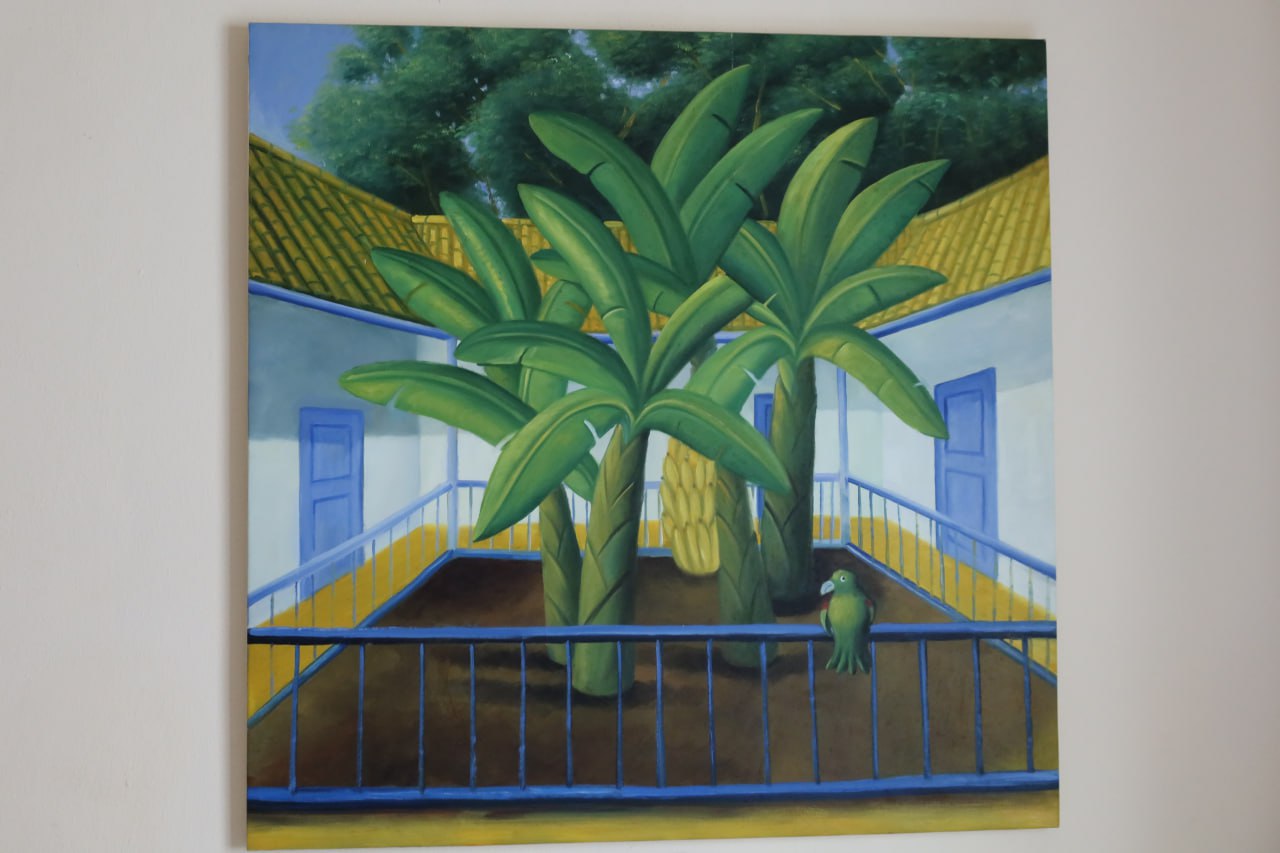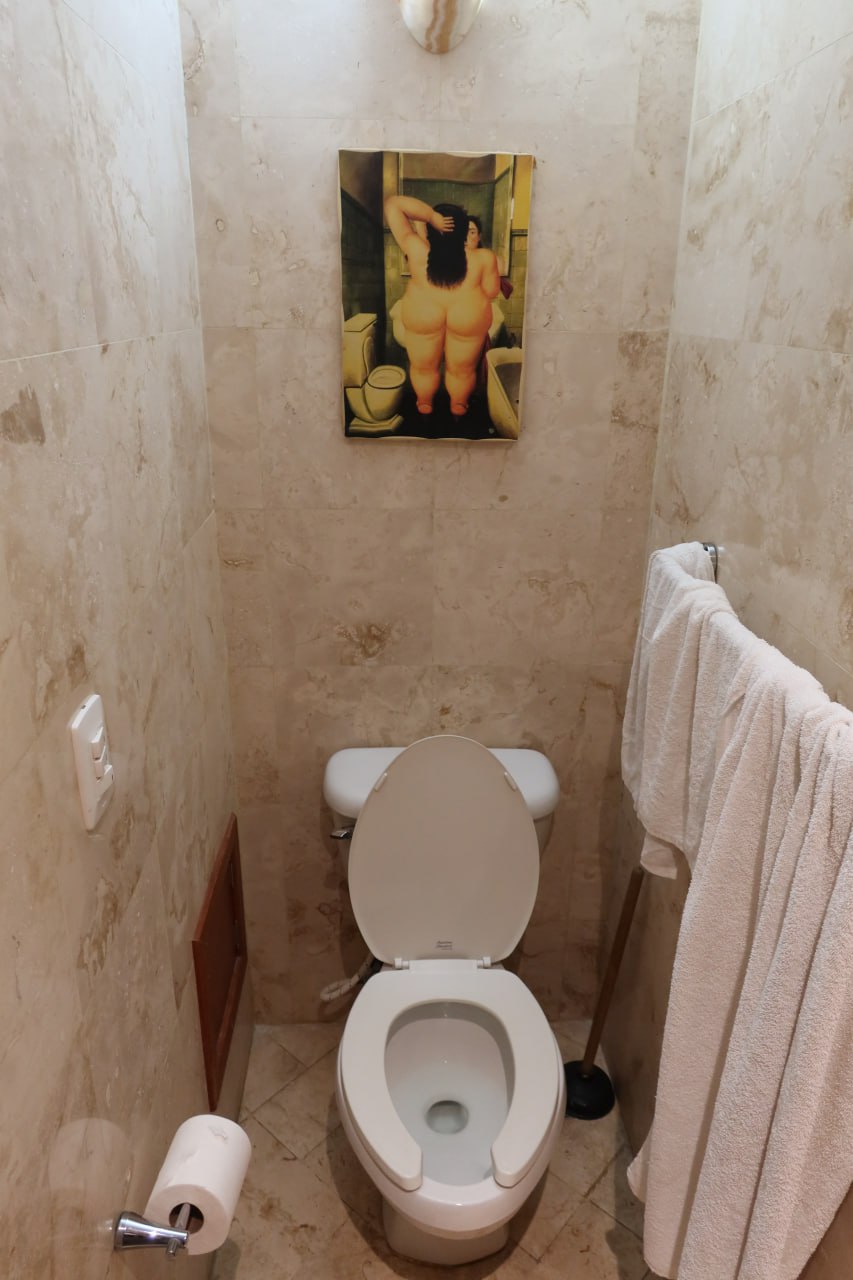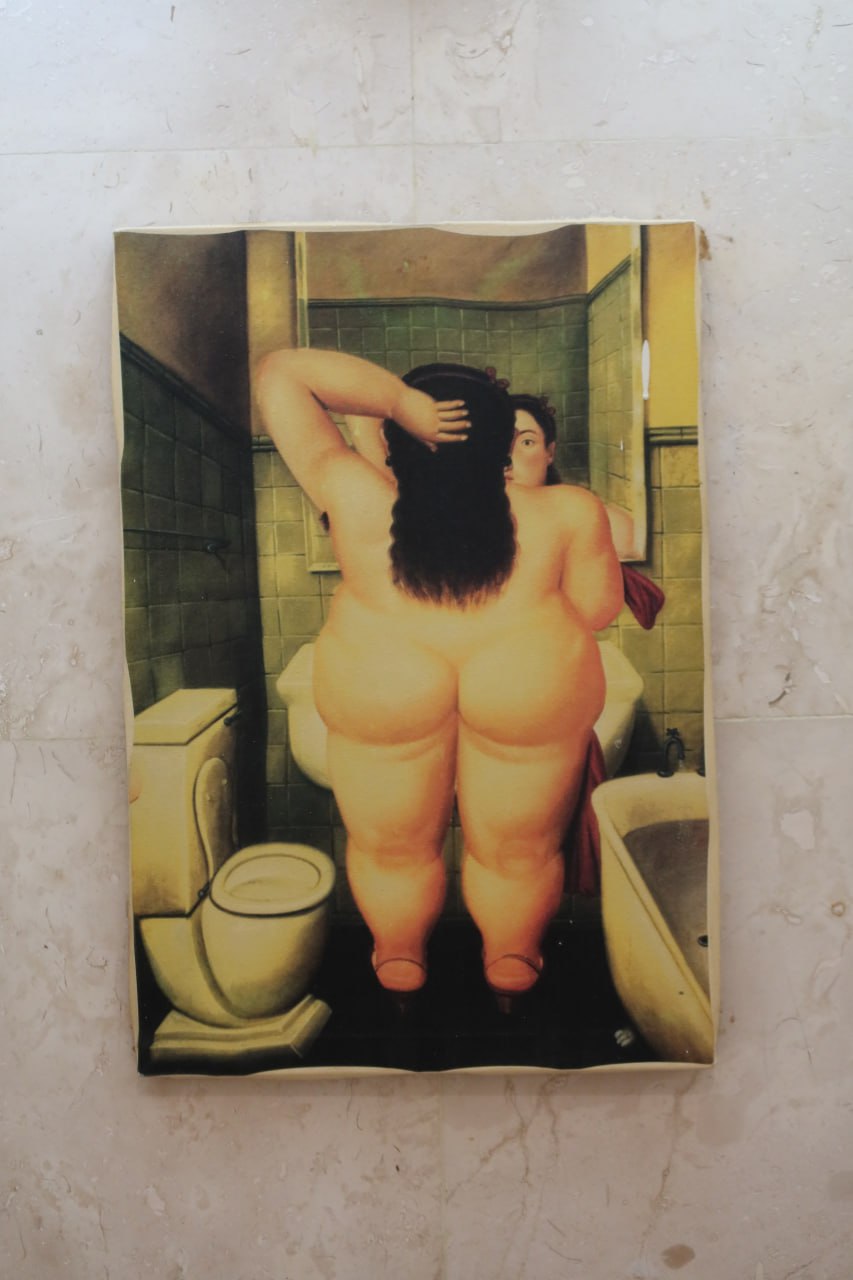 The art hanging throughout the condo certainly had a theme. You can really tell that it was all painted by the same artist with a...taste. Everyone is caked up, even the child in the first painting. Even the dog. You just know that that bird is packing a dump truck beneath those feathers.