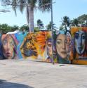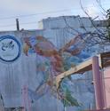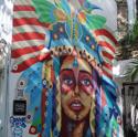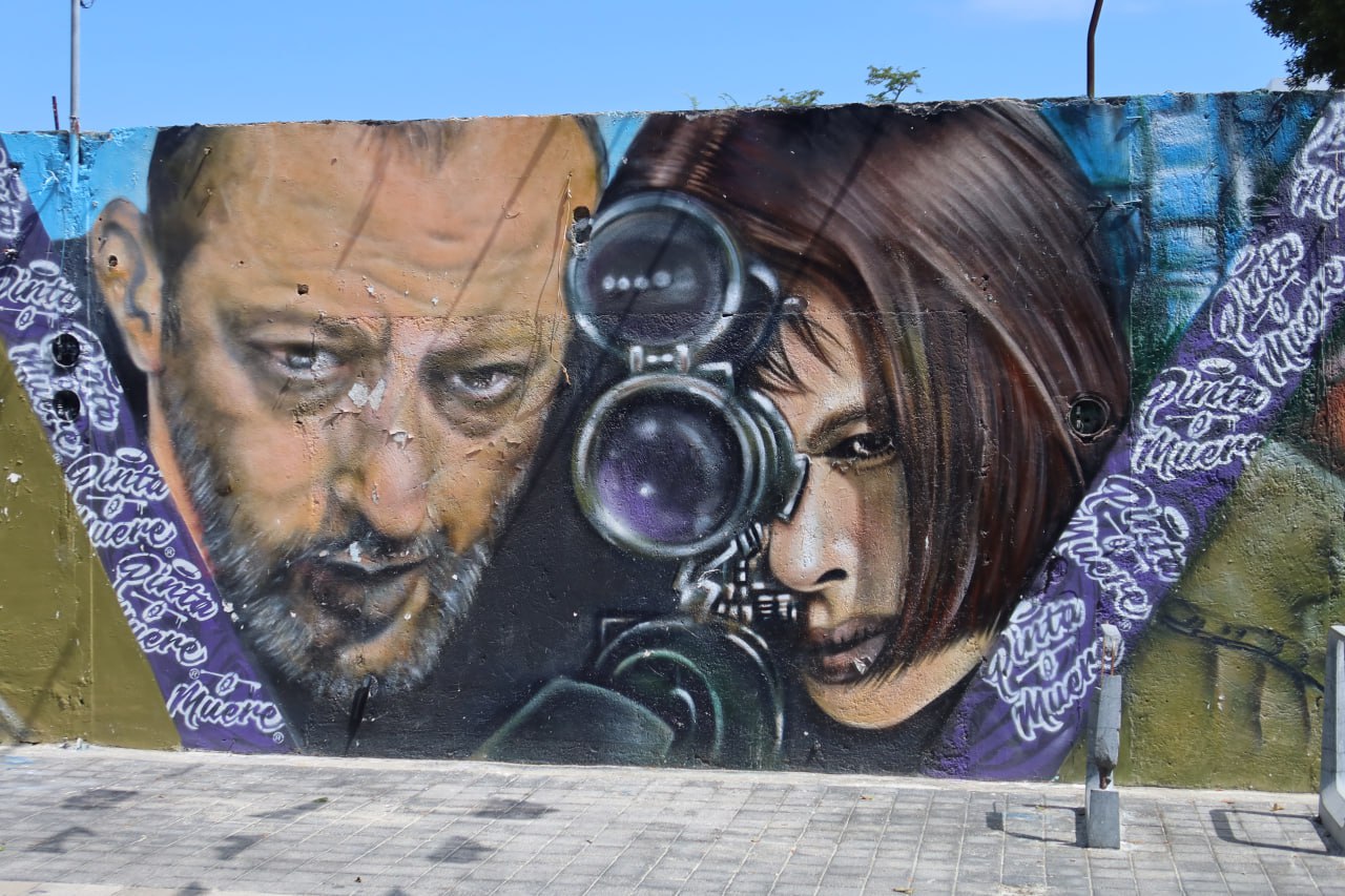 There was some low quality or gang-related grafitti, but the vast majority of it was actually well done. Sometimes it was related to a business, but quite often it was just art for its own sake. The purple stripes on the image with the woman aiming a rifle with a scope says "pinta o muere" (paint or die). I adore the pattern work in the parrot's feathers.
