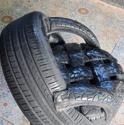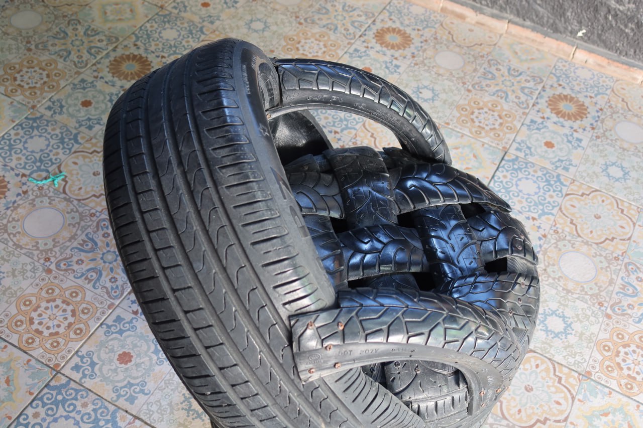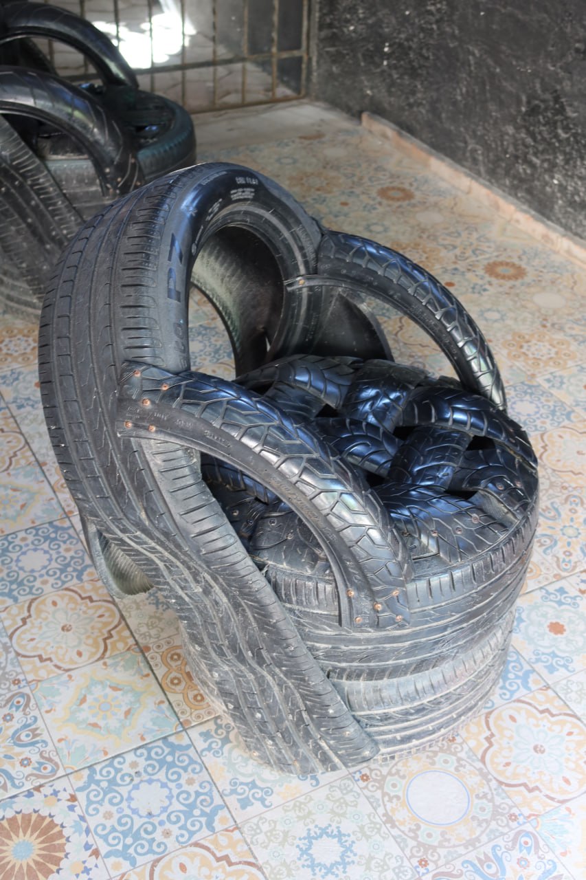 Speaking of recycled materials, I found this chair made of old ties. Here we would "recycle" these tires: melt them down or shred them up, repurpose them as a new source material, and otherwise put a bunch of carbon into the atmosphere to reuse them. Instead of doing that, a box cutter and some rivets could turn the tires into a chair that can actually be used immediately. I wish that more recycled goods had the soul of their materials' past lives. This chair was quite comfortable.