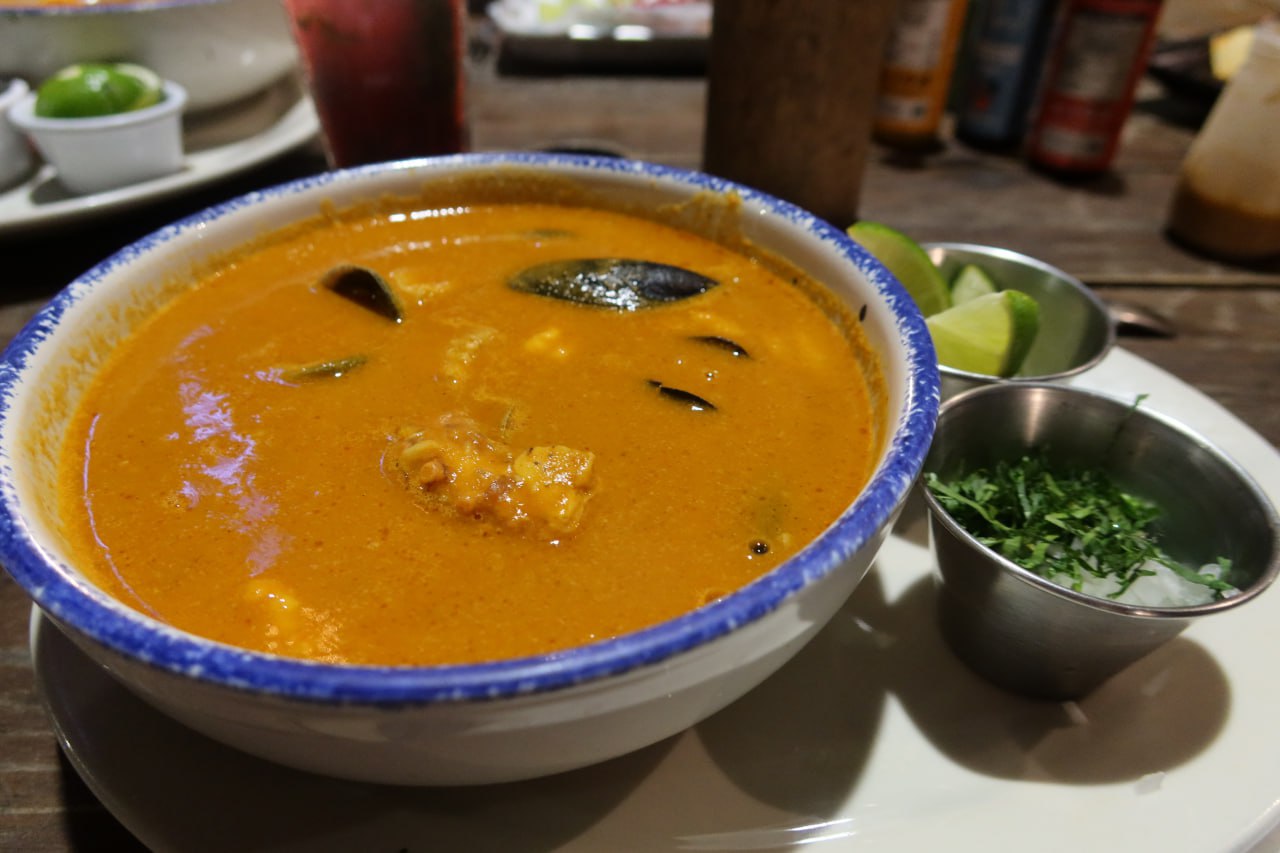 There was a seafood restaurant next to our hotel where our wristbands got us a discount. I had been wary to check this place out since our hotel was right on 5th ave, the main drag through town. I reasoned that anywhere so close to a massive tourist area would certainly be low quality since they would have spent all their money on the location and they would be catering to drunks. I'm used to the US where the best restaurants are the sketchiest and the restaurants closest to the attractions are the worst. I was wrong, though. This place was fair. The soup was packed with flavor, the chips were fresh, and the tacos were really nice.