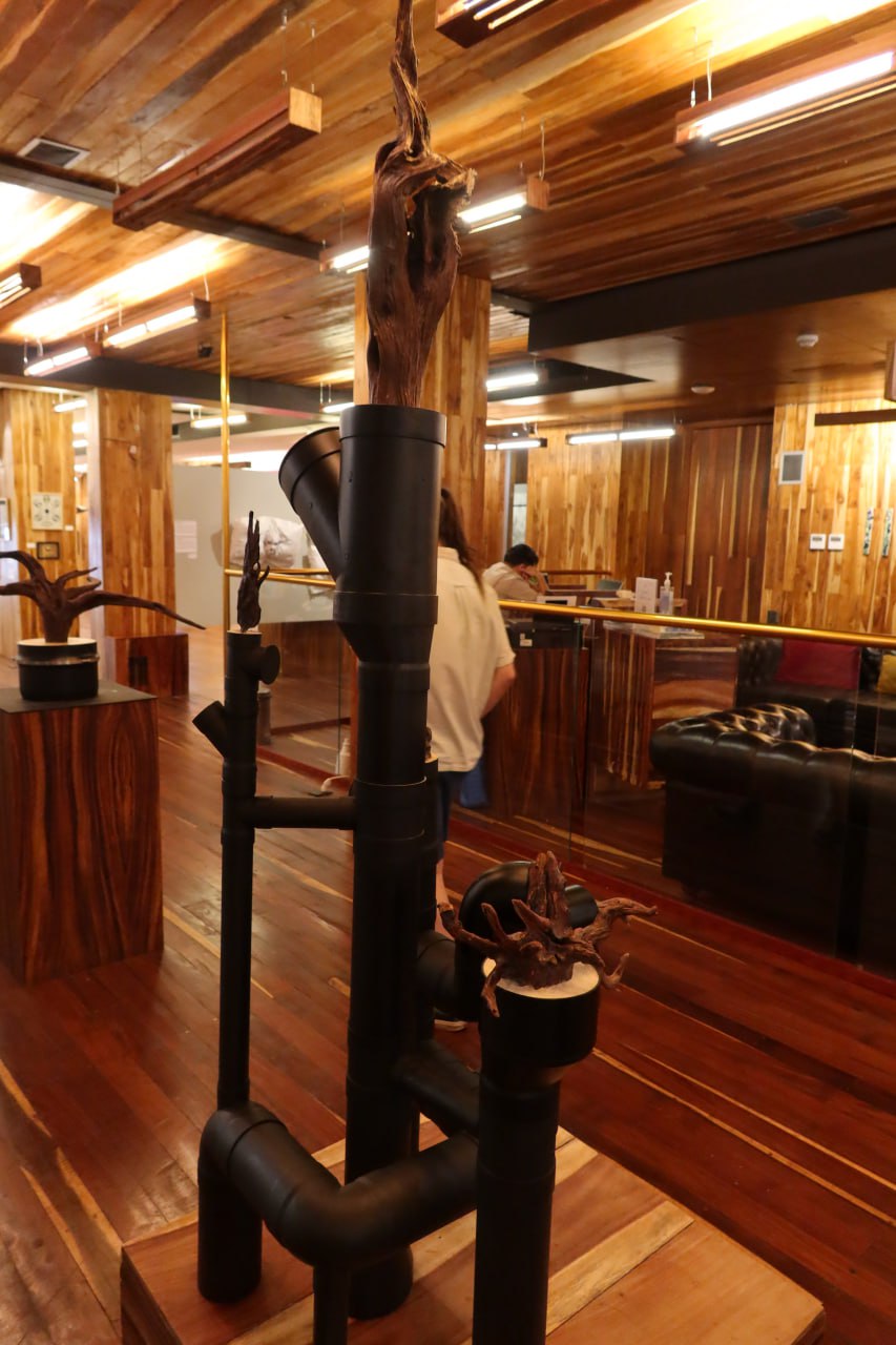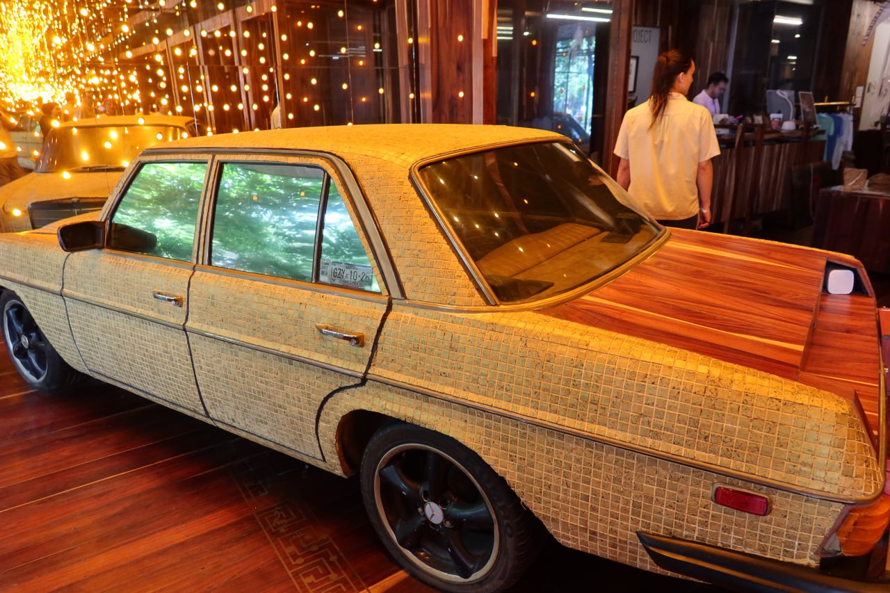 One day we were walking around aimlessly and some members of our party were not coping with the heat very well. So we found a nearby art gallery that had A/C and popped on in. I must admit that most of the art went over my head. I don't really understand the message conveyed by wood growing out of gravel in plastic pipes. The plane in sand rocks, I really liked that. The jaguar was cool but I couldn't take a proper picture of it. The jaguar's installation was massive, taking up a whole corner of the place. The animal was laying on the ground, killed as you can see, and on every nearby wall were CCTV cameras pointed directly at it. I couldn't take one picture that fully captured it. The tile work on the car near the entrance was really nice, it was done so meticulously with such great attention to detail.
