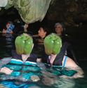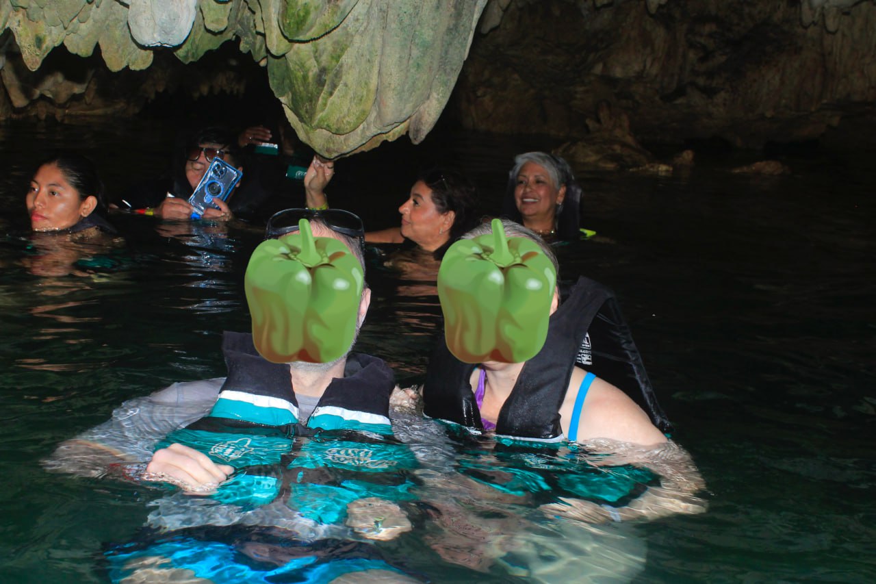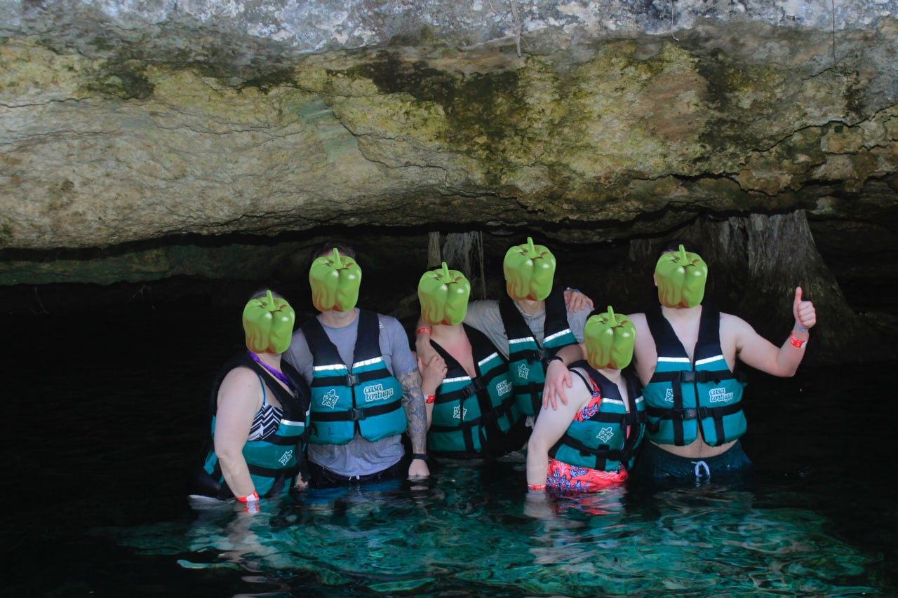 Cenotes are underground rivers and water systems that are all interconnected. The entire Yucatán peninsula is on top of one gigantic cenote network. We went swimming in it. Not only did this water-cool us (by swimming) but it got us out of the sun (by being underground). It was stupendous. I didn't bring my camera with during the guided tour because water is wet and my camera is dry and I prefer to keep it that way. There were humongous ledges that you could jump off of into the water, and I jumped off every single one of them (sometimes multiple times). I have no evidence to back this up.