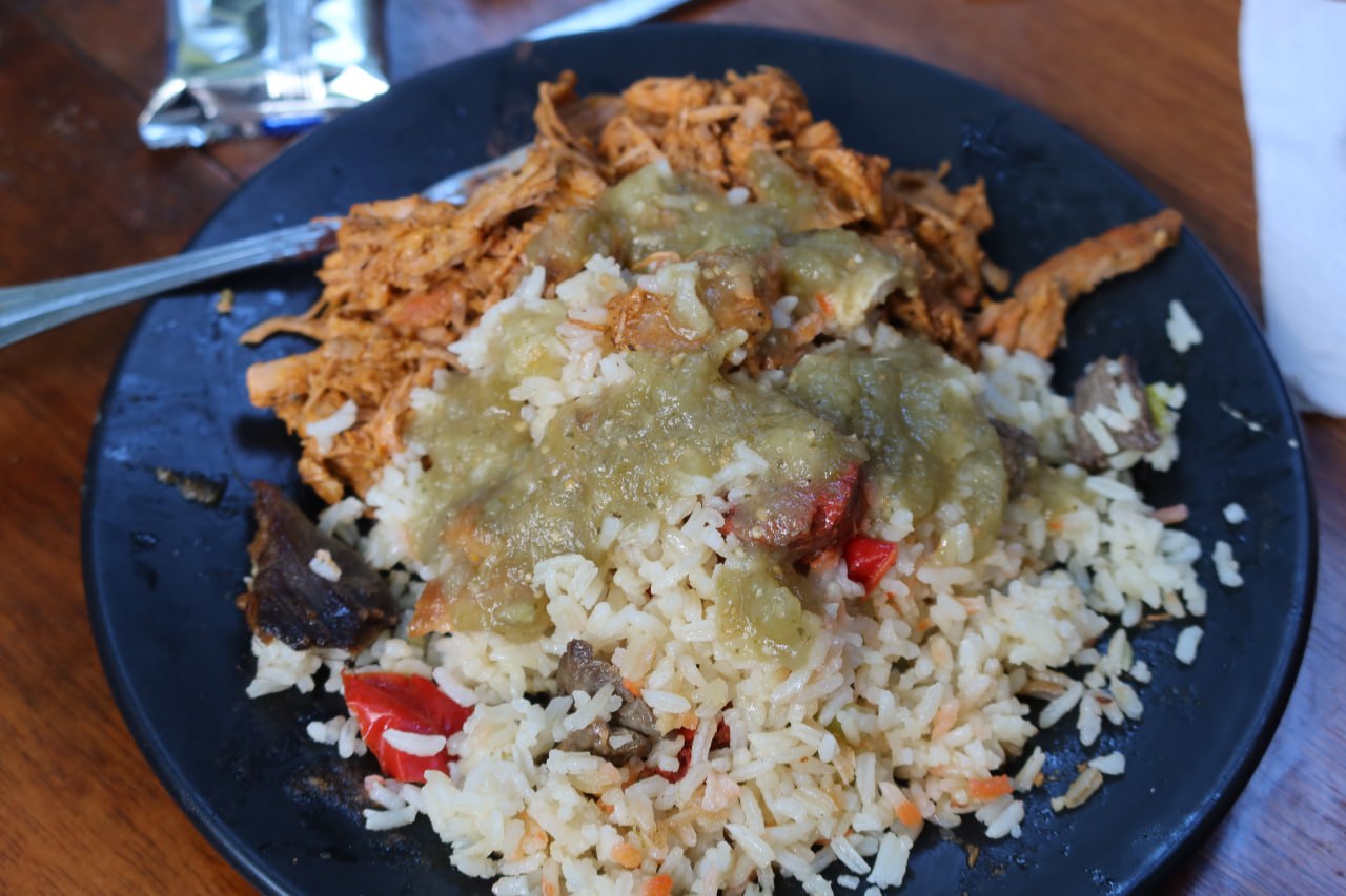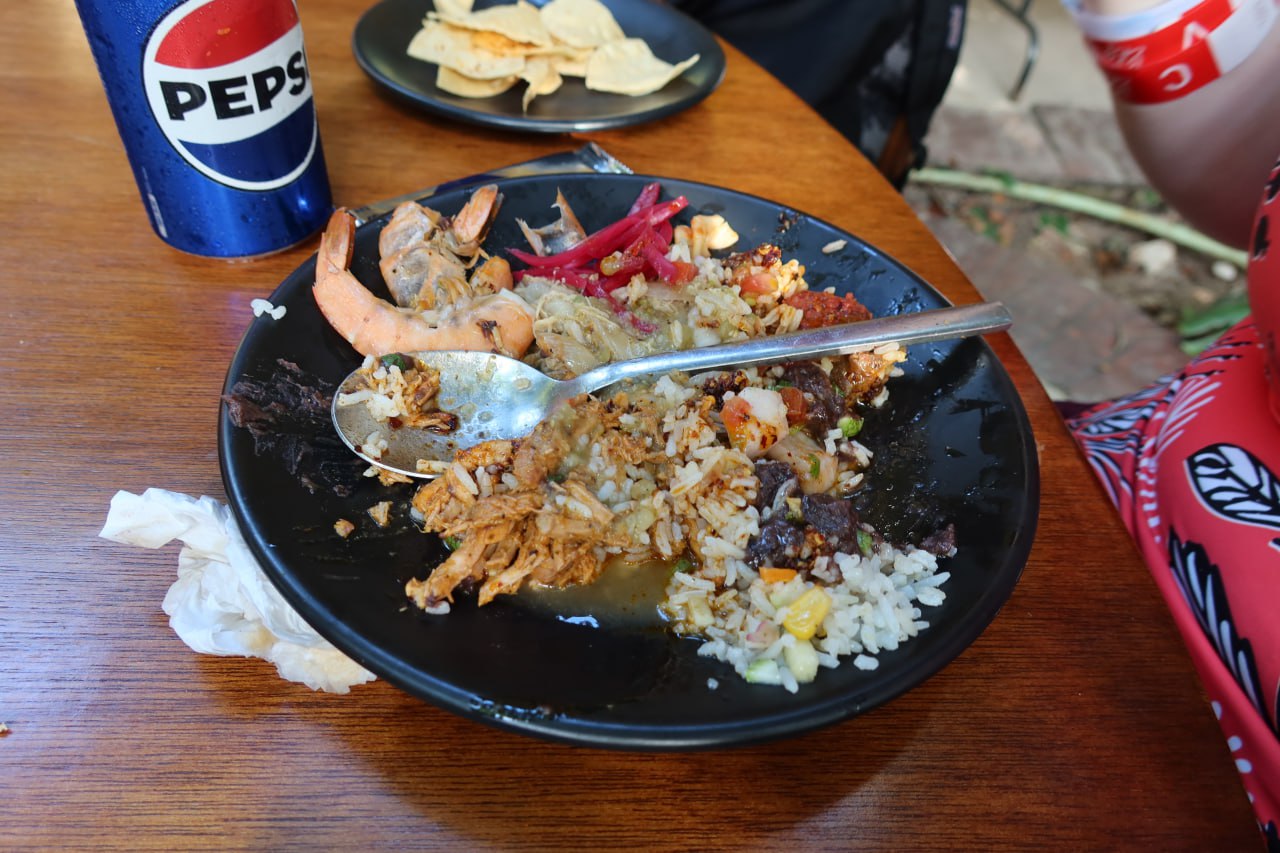 When we swam in the cenotes (more on that later), we worked up quite an appetite. The buffet was about to close, but the men running it kept it open and gave us a discount from the posted price. Here you can see some plates of the various buffet food mixing together. Among the options was cochinita pibil, which I called "chibli pibli", prompting a laugh from our waiter. This is a traditional (pre-Hispanic) dish native to the Yucatán peninsula, and it was actually quite good. I'm not sure how much was the food's quality and how much was my extreme hunger from swimming for hours, but the meal here was my favorite on the entire trip.