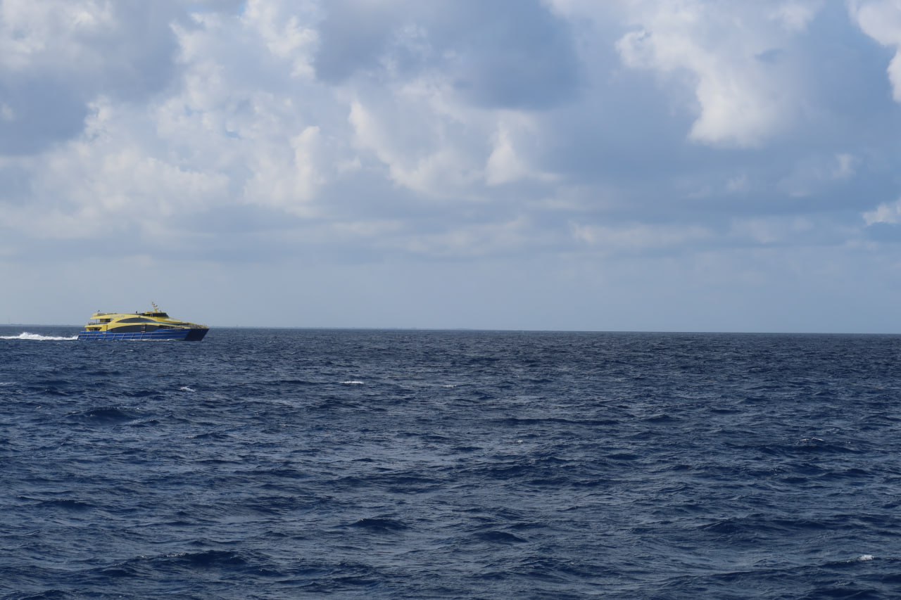 The coral reef snorkeling tour actually departed from Cozumel, a small island across the water from Playa Del Carmen. In order to get there, we had to take a ferry. The views from the water were great. I was struck by how nice the ferries looked. Coming from Washington state, where the ferries are government-operated and they look government operated (run-down, dilapidated, kept running out of reluctance), the ferries from PDC to Cozumel looked like they were from a Sci-Fi movie or a tech startup. Admittedly these ferries are much smaller, only carrying people and not cars, but they looked really nice.