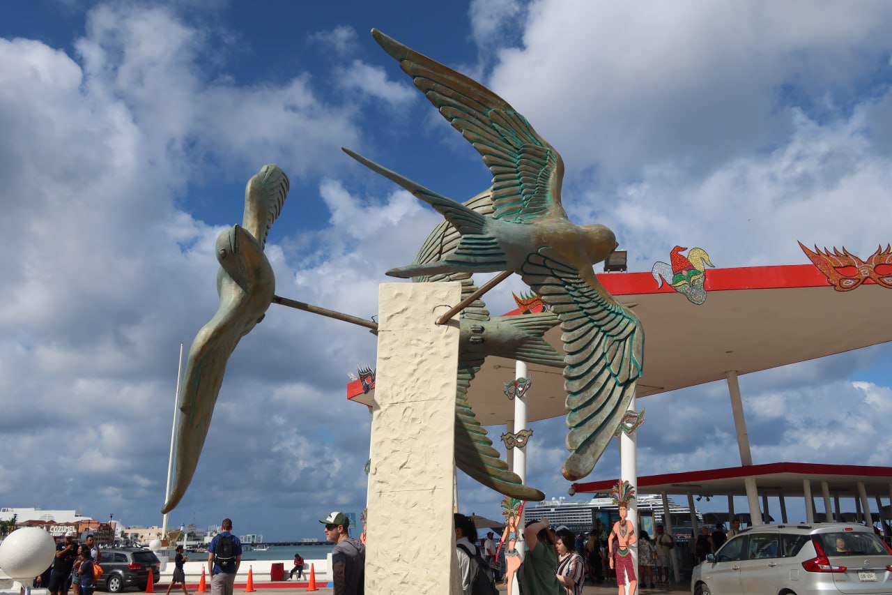 One of the things that we could see on Cozumel from the water was a giant pyramid-like structure. It's immense and you feel like you're on your way to Giza as the boat draws nearer. Could it be made of stone or glass and steel? What architectural and culture treasures lie in store here? When you get up close, you find out that it's a hotel with a gigantic thatched roof.
