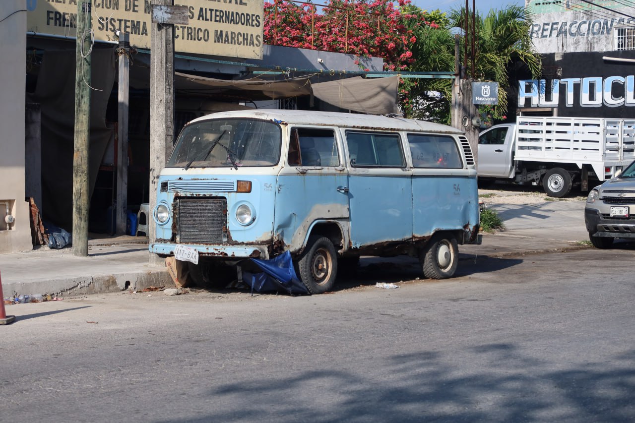 Lastly, a parking mechanism that we saw quite a lot of. I believe it is a form of anti-theft. A strange little buggy on the island of Cozumel. And a VW bus that simply won't quit.