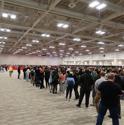 My understanding from talking with other attendees for the duration of the conference is that these badge-line issues did not let up, and similar experiences were had by all until the final day of the conference, when there were relatively few people still needing to get their badges. The badge is printed off as-needed when you get to the front of the line, so it's not like they had to dig around in boxes to find stuff. I think that the line issue could be alleviated in the future with a few changes: