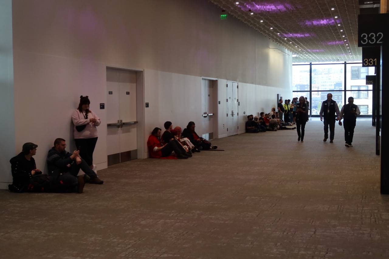 In May of 2025, I went to Sakura Con in Seattle with my girlfriend. This was my second year attending and her first. To attend the conference, you have to have a badge and (if you're an adult) a wristband. You can purchase your badge up to a year in advance, but the earliest that you can get it is the night before the conference kicks off, Thursday night. So, after my workday ended on Thursday, we moseyed on over to the Seattle Convention Center and stood in line.