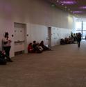 The line was a trainwreck. By my watch, we stood in line for 3 hours and 30 minutes (and 7 seconds). There was some funky line-juggling going on and some people who got in line 2 hours after us were getting their badges 30 minutes before us. I'm happy for them: I don't want anyone to stand in line for that long, but seeing this happen did breed some resentment in the people around me who had waited for longer. By the time we got our wristbands and badges at the front of the line, the line had grown even longer than it was when we entered it. I did some rough math using paces as a unit of measurement, and by my estimate the line had grown by another hour.