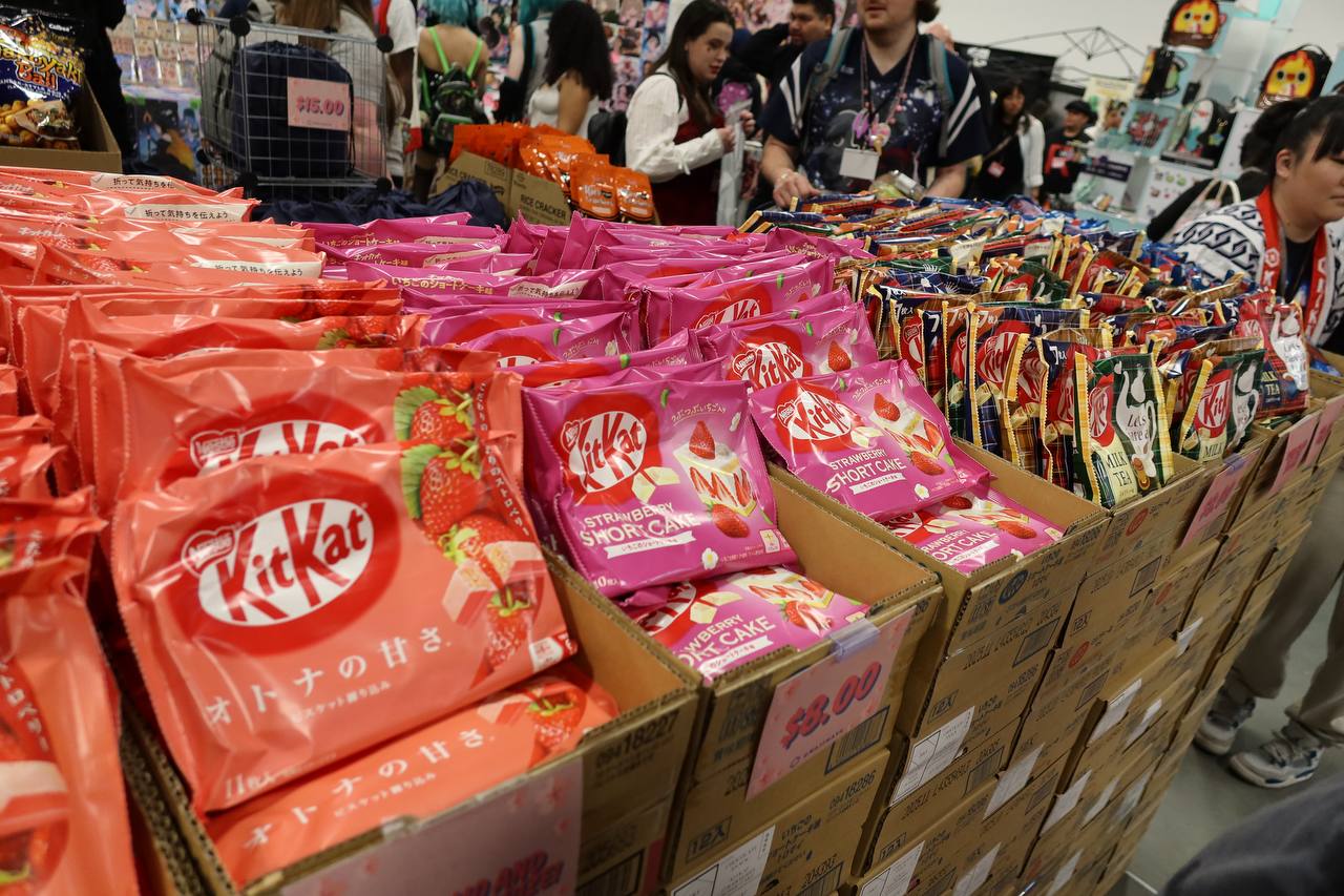 If all the walking around and looking at stuff works up your appetite, you can find some snacks or a nice refreshment, some of which is clearly Japan-inspired or Japan-sourced (pictured below). There's a food court that serves standard American fare and I recall one vendor booth selling locally-made meat sticks. These weren't even pretending to be on-theme, but they were pretty good as far as meat sticks go.
