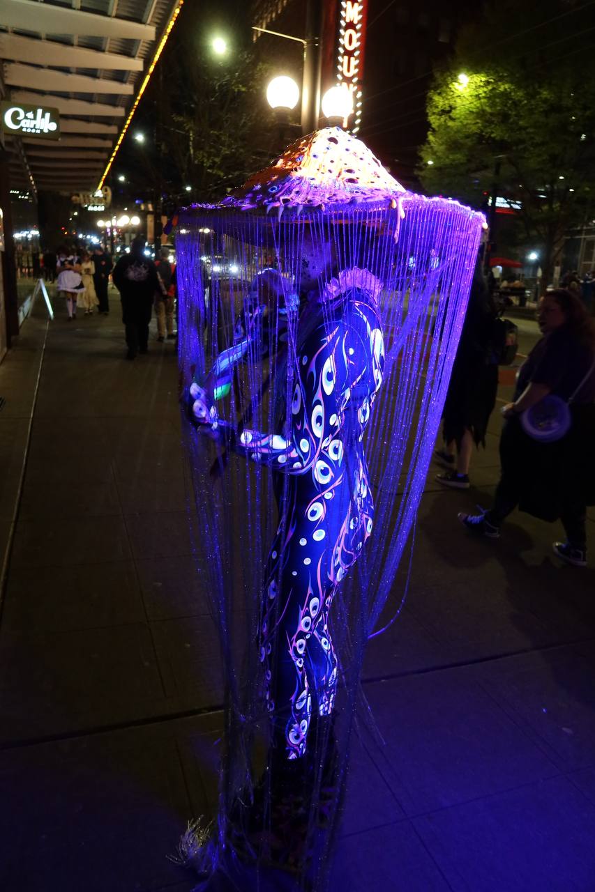 Not all cosplay is an established brand, however. Not everyone wants to dress up as a videogame or an anime. Some people just want to dress up really cool and don't often get an excuse to do it. I asked some of these people why they chose their theme costume and their answers were that they just really like strawberries/moths/mushrooms and think that they are cool. These costumes were completely hand-made and well done.
