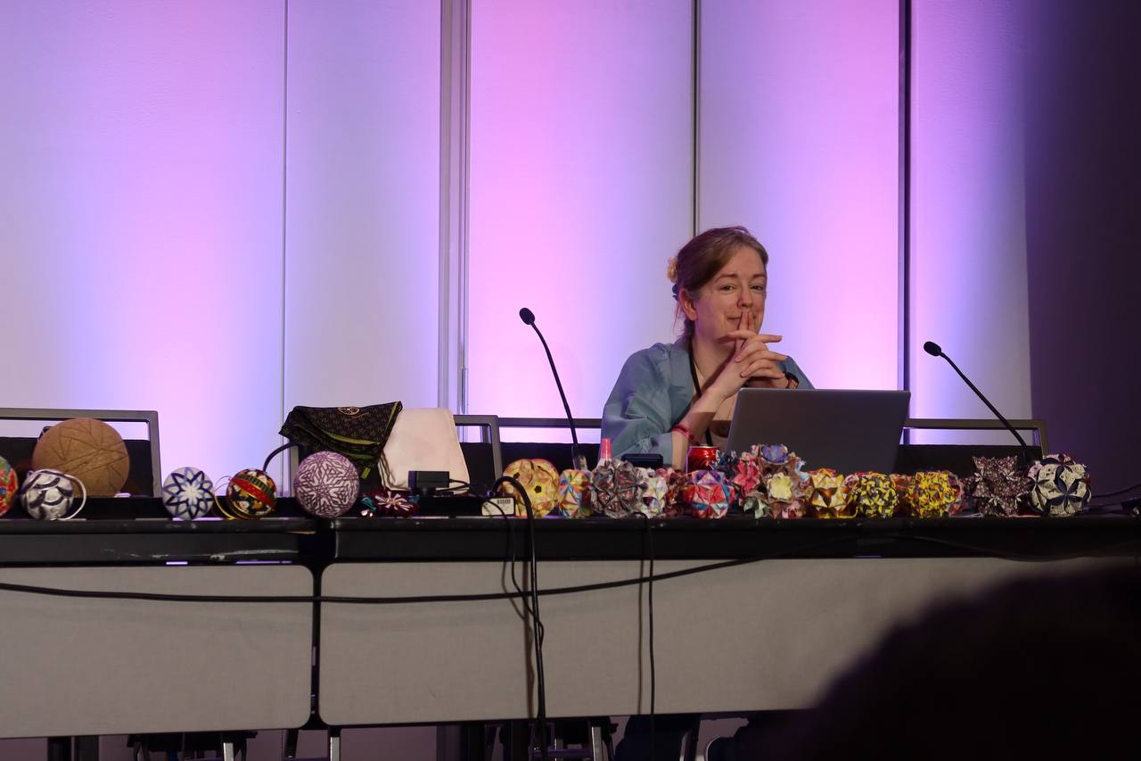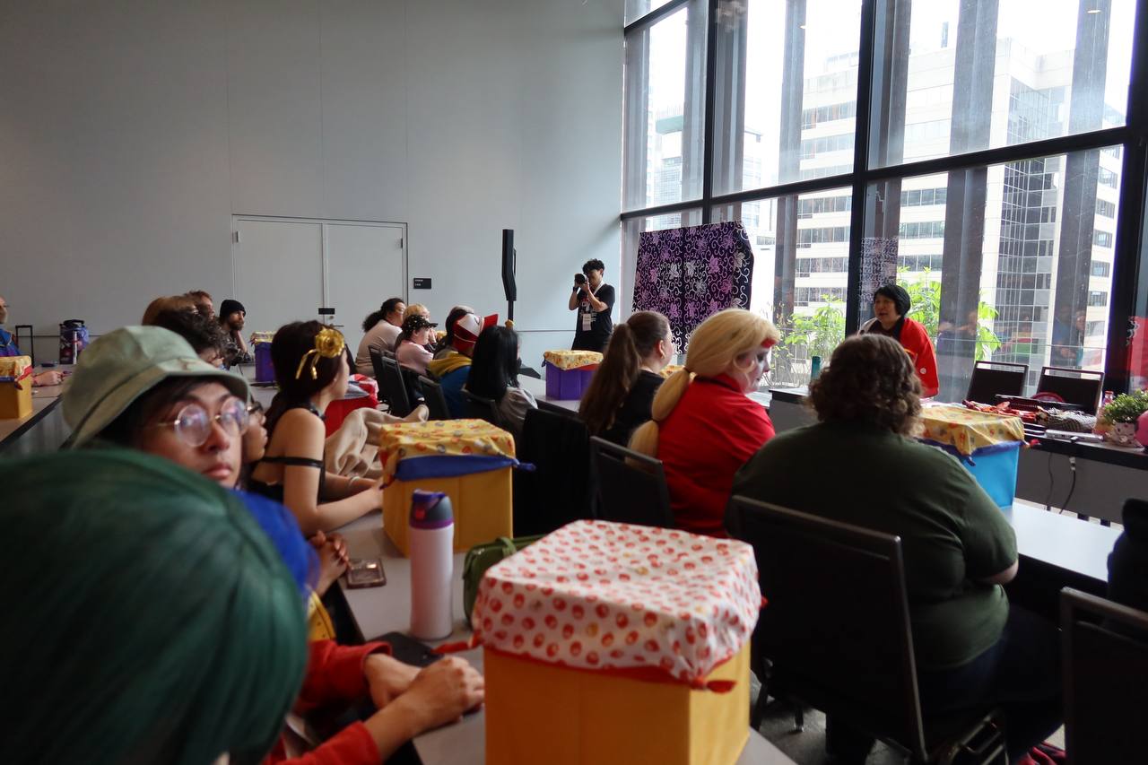 When I took the picture of the cloth-wrapped harp, we didn't know what the wrapping technique was called. But we soon learned all about the Japanese art of furoshiki. A woman from the Japanese consulate gave a panel on gift-wrapping and bag-making using just a single piece of cloth. That's a bit of a reductive explanation, she showed us hands-on how to use single pieces of square fabric for a wide assortment of tasks that I never would have imagined using them for. If this sounds interesting to you, I cannot encourage enough checking out her YouTube video which is nearly beat-for-beat identical to the hands-on instruction at the panel.