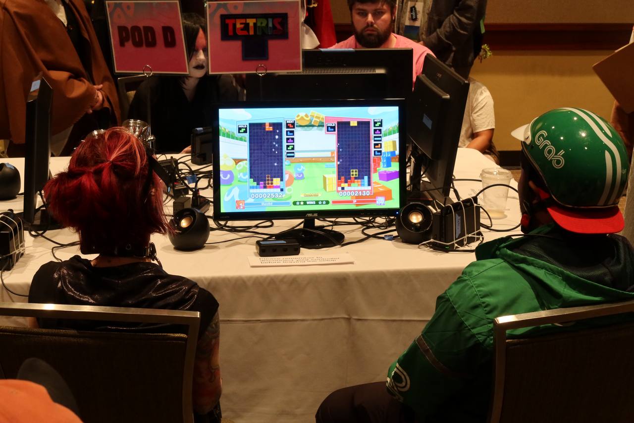 I'm not sure if these two were dressed up as established characters or if these were original costumes, but I thought that both looked so damn cool. I found them playing against each other in a Tetris tournament in the gaming zone and asked to take their pictures. As an aside, the girl absolutely obliterated the guy in Tetris. He didn't even stand a chance.