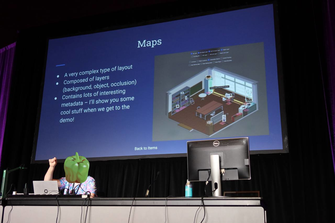 The speaker politely asked attendees not to post pictures of his face on the Internet, so I have obscured his likeness using a Green Pepper, which I think he would appreciate since he was also using a Framework 13 running Linux (I am typing this on my Framework 13 running Linux).