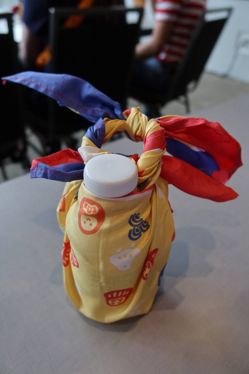Since learning about furoshiki, we have used them to augment or supplant backpacks, shopping bags, packing cubes, and more around the house. I am overjoyed that I went to this panel, it had a measurable positive impact on my life. Immediately after Sakura Con was over, we went to a Daiso and found the same furoshikis that we used in the class. If you're looking, they're labeled as "bandana" instead. I would love to someday own real Japanese furoshiki cloths, but they're a bit expensive from overseas. I prefer carrying these Daiso bandanas instead of canvas bags to the grocery store because they fold up smaller and they are a lot of fun.